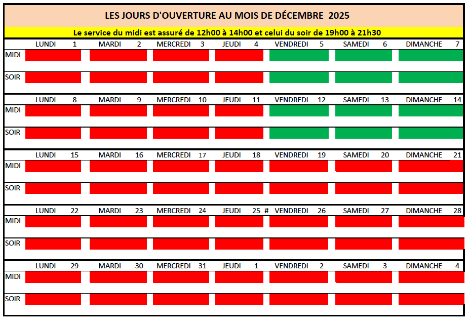 Fermeture le 14 décembre 2025 ! Réouverture le 14 février 2026 !